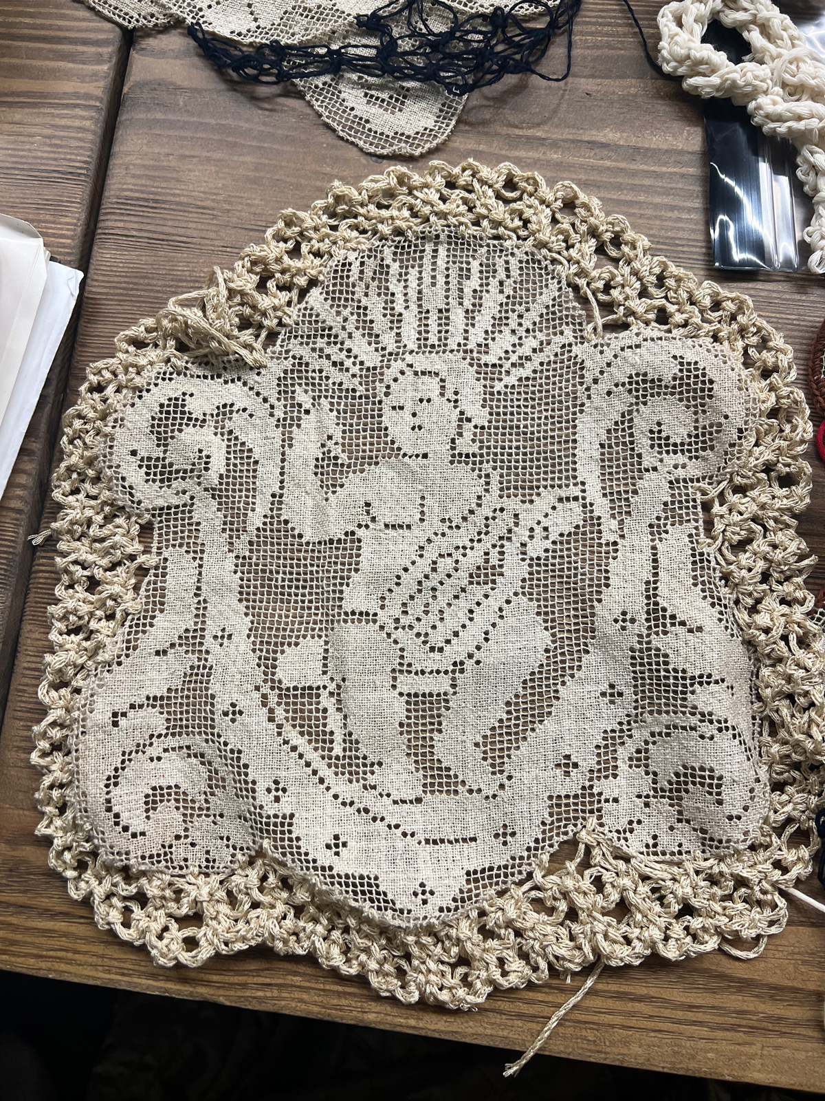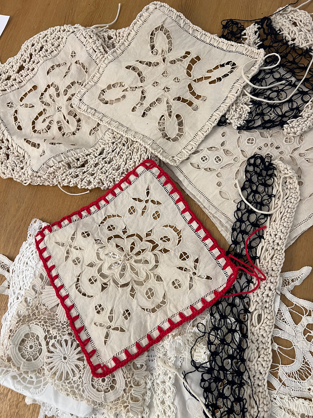 Originally, these textiles were used in everyday life as coasters, table linens, or bed covers.