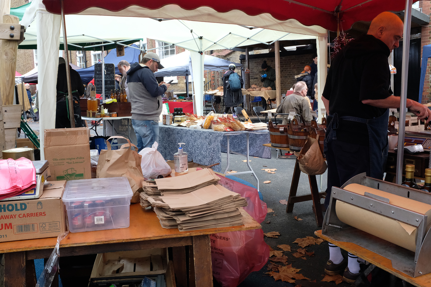 At the brocantes, people naturally gather around lunchtime—pregnant women, children, couples, and friends forming small circles together.