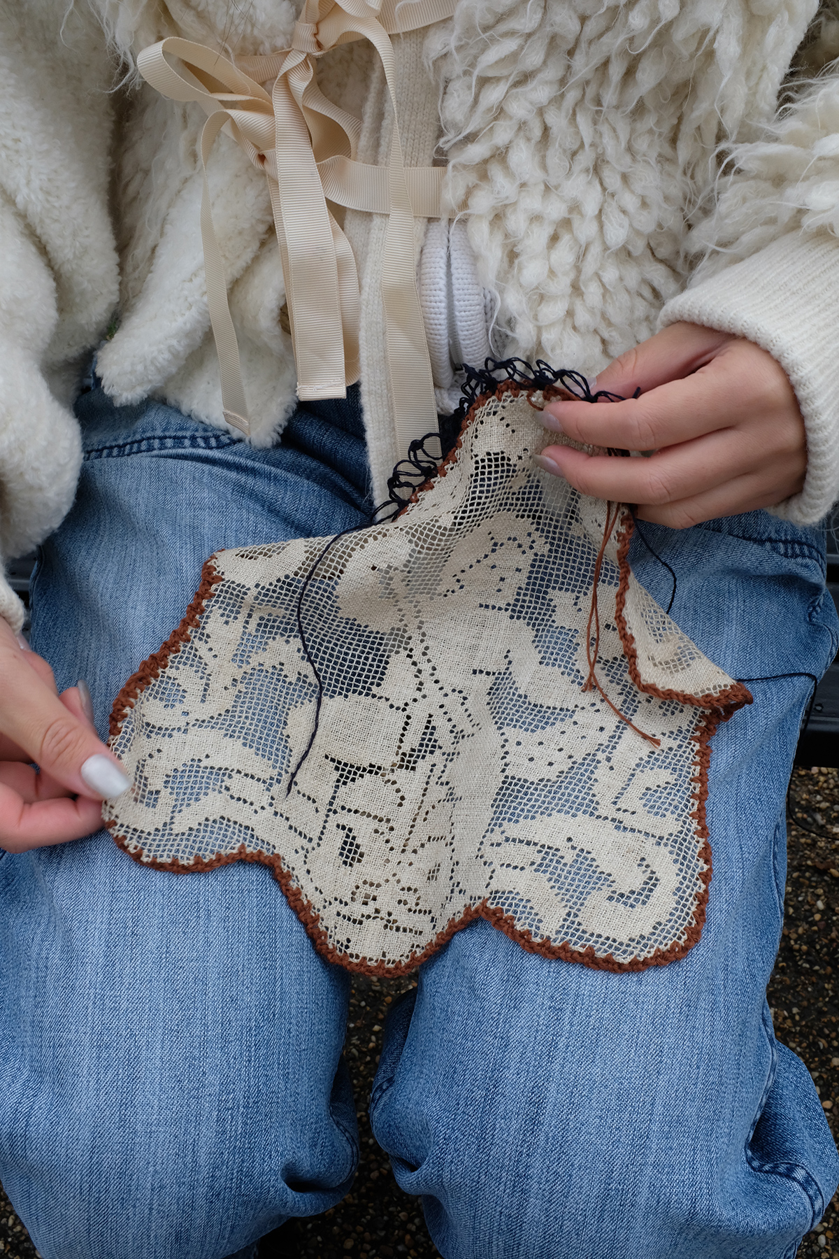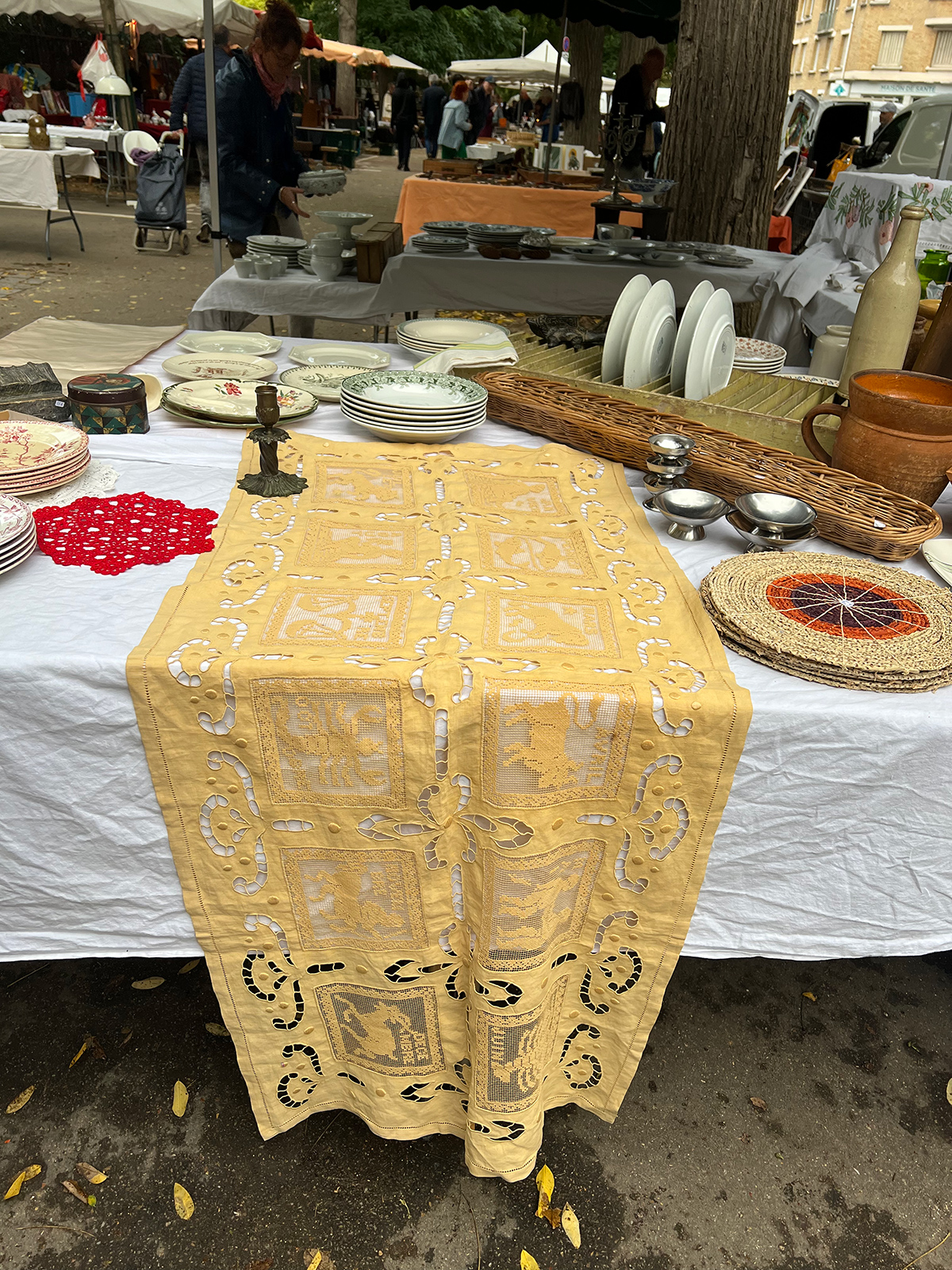 The sellers shared the stories behind each piece of lace and textile.