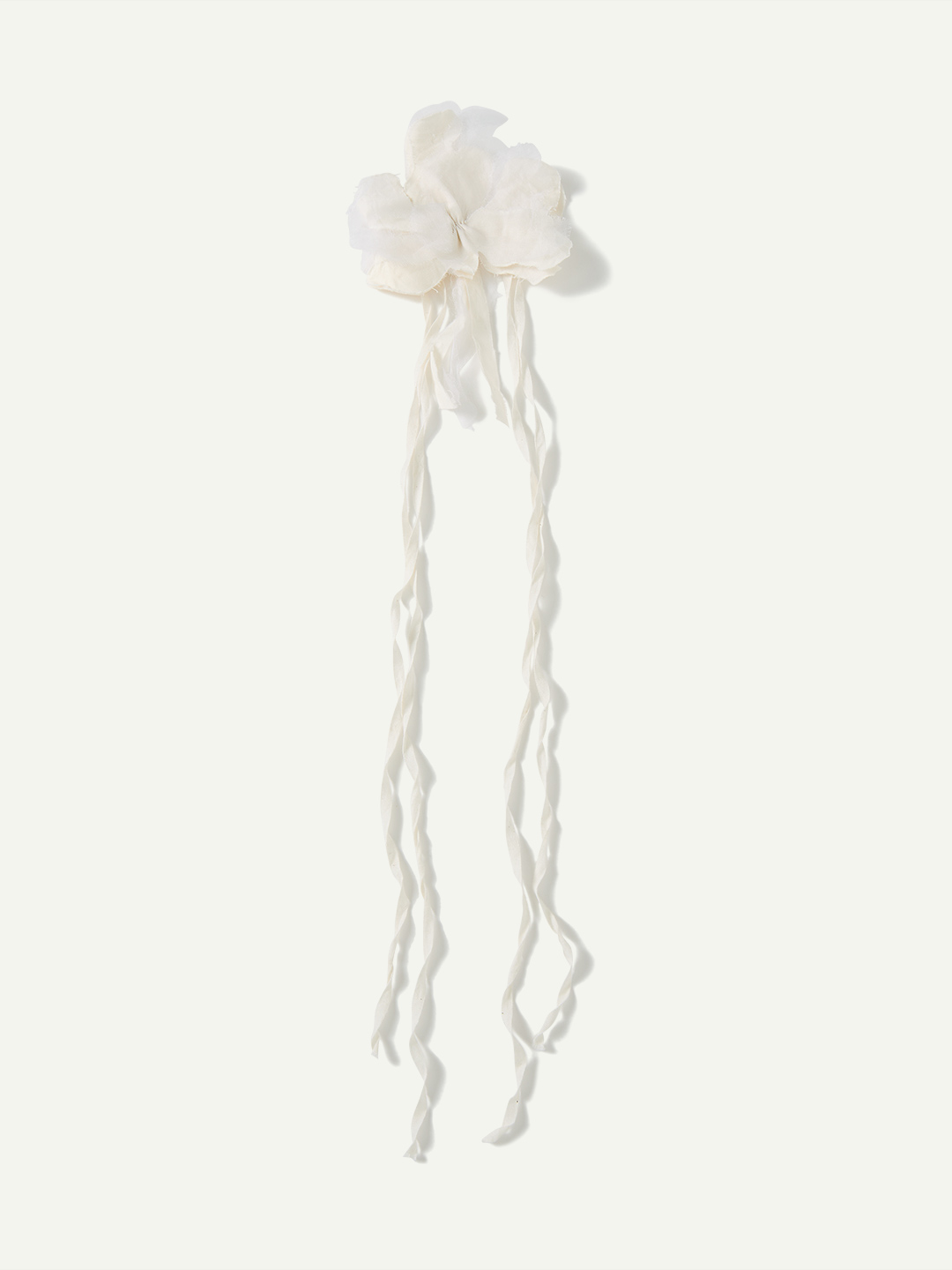 The Iris Sheer Tie layers two different materials through delicate handcraft, inspired by pressed iris flowers.